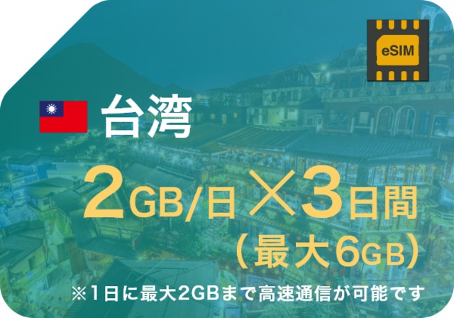 eSIM 台湾 2GB/日 ✕ 3日間(最大6GB)